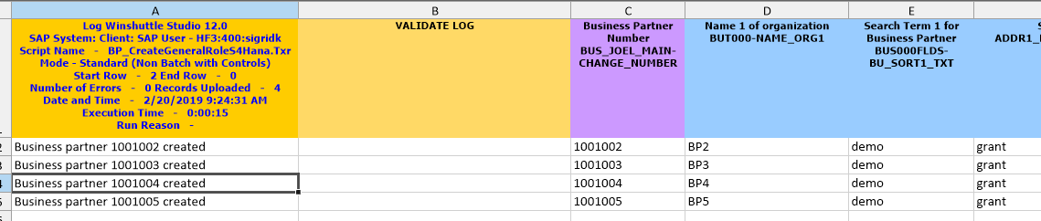 So you can extract the BP number from column A with the Run Log via excel formulas