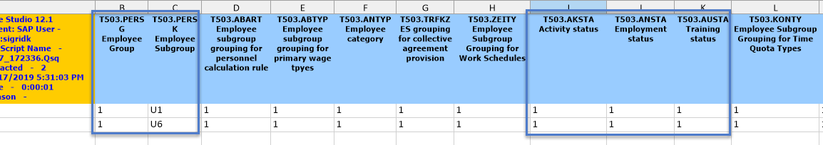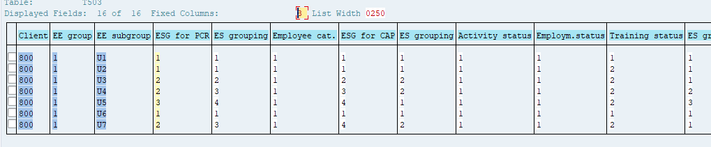 I picked 3 random fields - activity status, employee status and training status and said if all 3 are 1, along with EE group = 1 and EE subgroup between U1 and U9. I see the above rows - only 2 rows should be returned in my query based on my criteria.