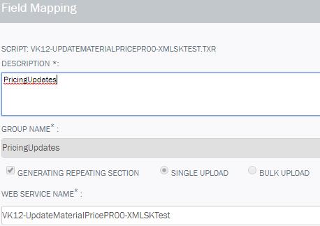 - There is a difference in Transaction Script Web Service Field Mapping values in your approach compared to what I have, namely the Single Upload and Bulk Upload radio buttons under the Group Name text box: