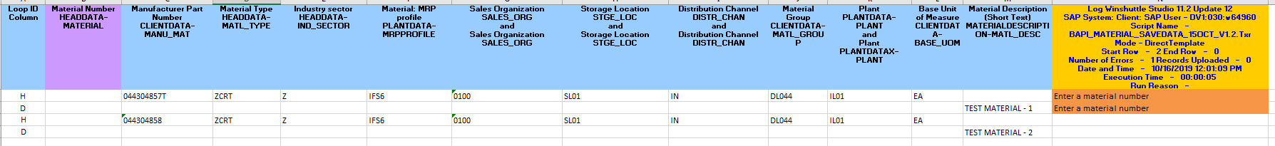 Am using BAPI_MATERIAL_SAVEDATA for Material Master creation (MM01). My requirement is to auto populate the Material Number when entered Material Type, Industry Sector and Sales Org fields (Plant, Storage Loc, Sales Org, Distribution Channel, Mat Group) fields. In Basic Data 1, Manufacture Part Number is the source for Material Number along with few other fields and unable to create the material number. At present am trying to load only Basic Data 1 tab, and not sure where am doing wrong in mapping.