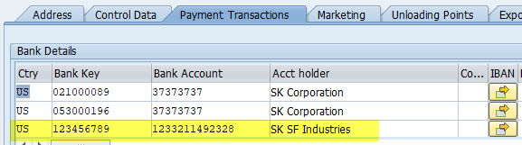 I am trying to create a script to add multiple lines of bank details (General Data-Payment Transactions) into customer masters (XD02).I cannot find anywhere on this tab a button that once one line of bank details is entered, it takes me to the next line.