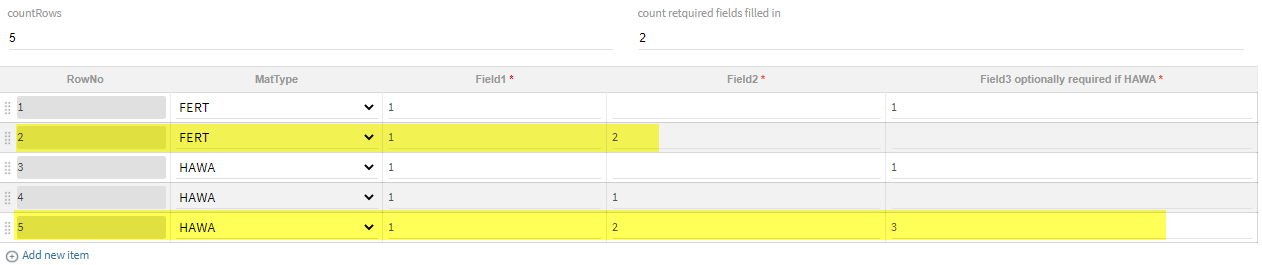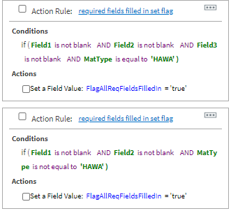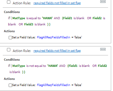 What I need.....is that same rule above, to include a validation that all required inputs have been completed. If not, then some sort of flag should be thrown or it breaks the yes/no function so that the user can input the missing requirement. I am really struggling with getting this right. Any help is greatly appreciated.