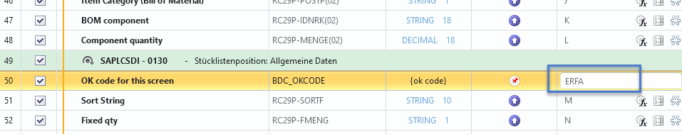 I've updated the script accordingly with the batch mode based screen numbers and ok codes. Also, an additional header screen was still missing. I have added it, but placed a skip in case your system does not produce it. As Sigrid had mentioned in her reply, there was also an incorrect ERFA ok-code which has been changed to a /00.