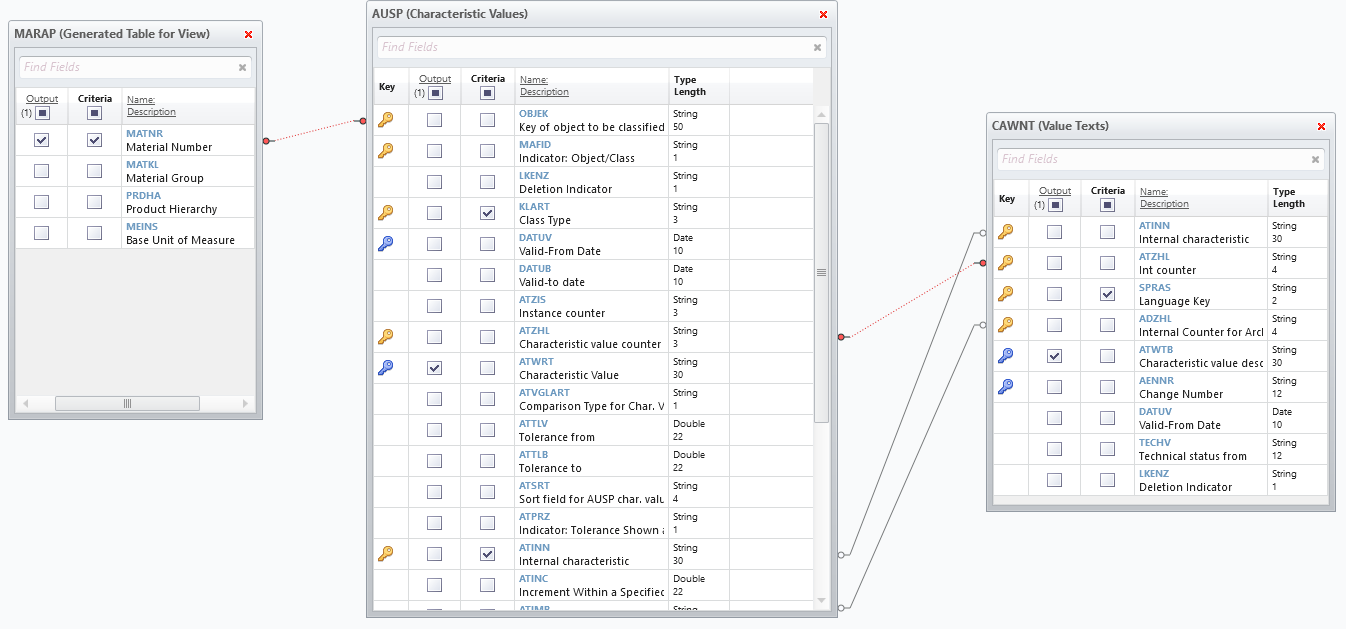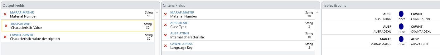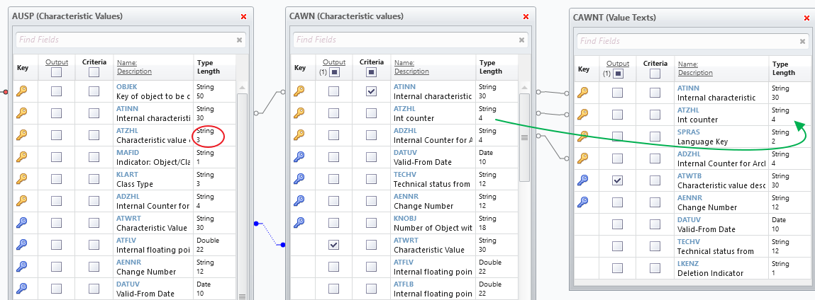 The same field (ATZHL) is also available in AUSP table but because length of String is not the same, it was not showing proper join (red in previous screenshot)