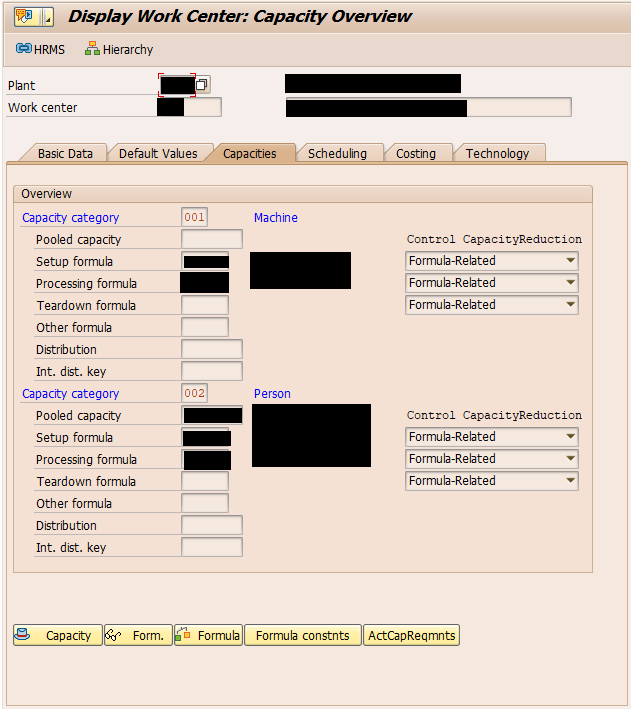 I am creating a work center or resource query that will pull data from the capacities and scheduling tabs. Some of the data is shared between the tabs - the Capacity category and the formulas.