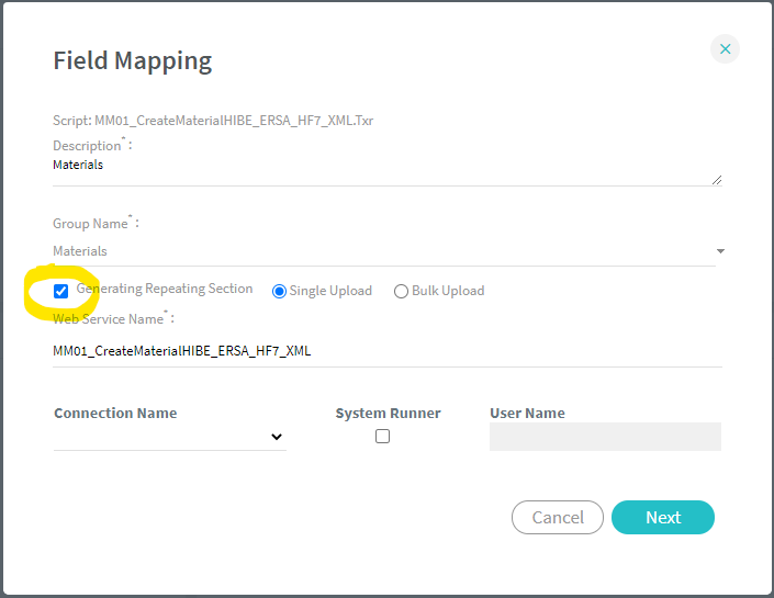 Hi everyone - I am working on a form in Evolve with an MM01 script and I would like to be able to create multiple materials (between 1-20) depending on what the originator determines. I'm a little stumped on how to make this work. I have a working script that we have used prior to Evolve that will create multiple materials. We now want to bring this into a form and I was thinking of using a repeating table so multiple materials can be added. Do I need to set the script up with a loop in order to run the script? When I think this through, I cannot figure out which field would be the Header. Or do I just create some arbitrary field and then every field after would be the "D" identifiers?