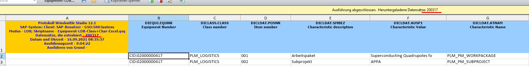 Hi Community, since weeks i try to extract the class information from our equipment.Query and direct isn't the needed output coz 300K rows in excel is very unsexy and not really nice to handle. so i tried to export it from IE05 and it work's nearly great, till that pop-up is comming to select the layout "AGAIN" coz it has no value when it's loaded in the beginning (see the red arrow's). Problem is i can't aktivate the second time the row with the layout it won't be recorded...and that's desperating. The only way to activate that row is with a mouse click and that click is not recorded.