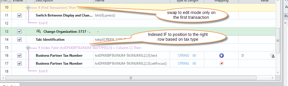 I have an example for the tax numbers, and was able to record the tax id, but you only use it in the Indexed IF