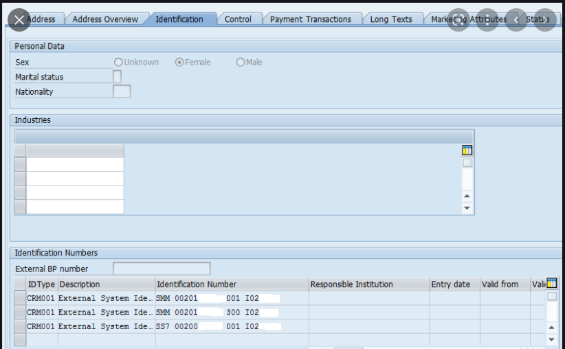Does anyone have an idea or sample template to add or change ID Types on the Identification Numbers tab, on the SAP BP. Currently, there are no means to go directly to a particular ID Type to change the Identification Number, or to add a new ID Type/Number without overwriting an existing value. Thanks!
