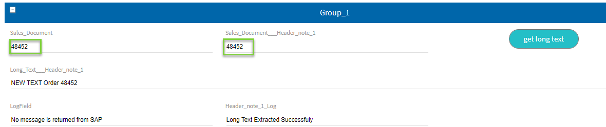 Then in Composer, ensure you set both sales order fields are set to the same order number - or change the mapping so that both script fields map to the same form field. (Note in my example I swapped internal note to header note 1, because I didn't have the so-internal note long text field. I also had a fixed language of EN in my script, so it's not in the form, but you could pass in a variable to get other language long text versions)