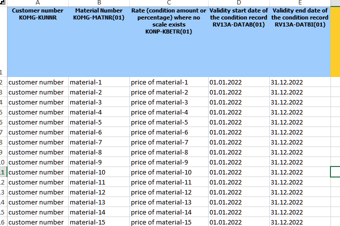 I'm trying to create a script that will create VKP0 conditions for ~6000 materials in ~500 plants (~3 million records total, so past the row limit of 1 Excel sheet)