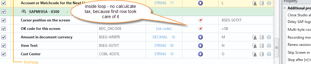 I am trying to run one line of code only during the first iteration of the loop , but i do not get the option for First transaction . Not sure what is missing .