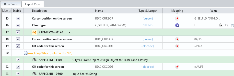 I am wanting to edit some class characteristics on equipment via IE02. i found the attached script and data sheet. But when I run in debug, I cannot get past the first entry. It opens the equipment, and class, but does not seem to search for the "Characteristic Description" and the insert the value.