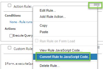 So my last resort was to try JavaScript. Did you know you can click on the ... next the to rule title and convert it to Javascript? It doesn't work for every single rule, but it does work for many,