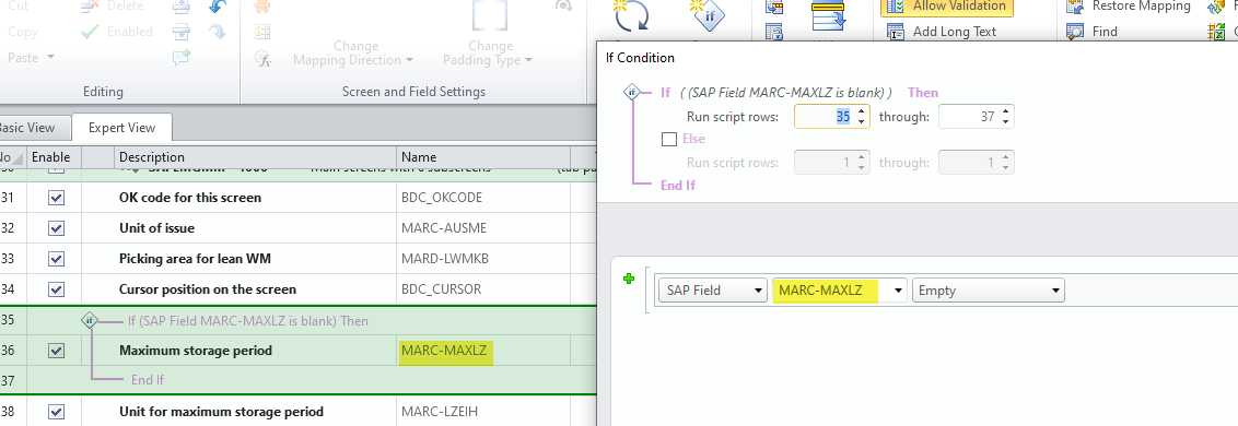 There is a "trick" for that. It's an IF on SAP field, which uses the "geeky" field name. For all of the fields that might be filled in from a prior run and thus read only, you can do something like this