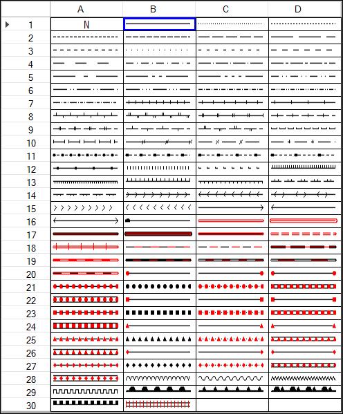 If there are specific line styles that you need, or styles you don't need, please let us know. Please reply with the style column letter / row number combination that is shown in the line style dialog. You can access the map version of the dialog to see all of the line styles from Spatial > Style > Line Style. Then open the Style dropdown.