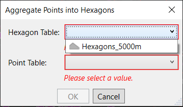 In this example, the dialog only asks for two tables using two dropdowns limited to tables with mostly polygons and tables with mostly points.