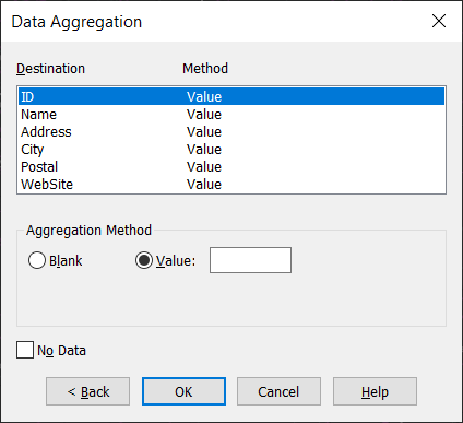Data Aggregation dialog allows you to copy over the attribute data from the input table to the output table.