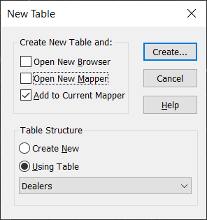 For the new table, I can specify how to display it, and to either create a completely new table structure or base the table structure on an existing table. I'll copy the table structure from the input table.