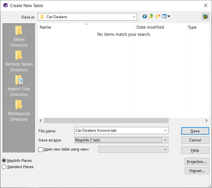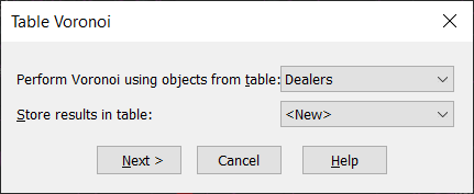 OK button, MapInfo Pro will calculate the Voronoi polygons for the input points.