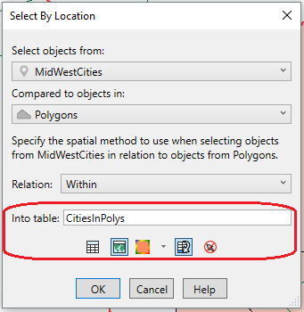 As you start selecting tables from the two dropdown lists, the Relation dropdown will also change to match the most common object types in the two tables. It will preselect the best match depending on the object types in the two tables and the data bounds of the objects in the tables. This will help you select the best spatial relation and help you avoid selecting a relation where you want the points in one table to contain the polygons in another table.