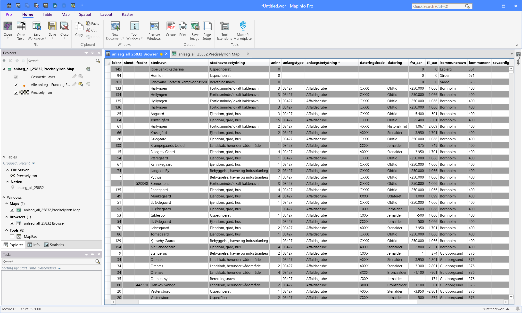 In MapInfo Pro, you can use the browser window to get an overview of the completeness of the data.