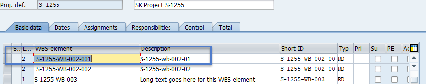 We are integrating a new company code and one step is to set up WBS elements on existing projects. Our projects have level 2 elements for each participating company, and then level 3 breaks down the type of work involved. This means that there might be one level 3 element on one project and 20 on another.