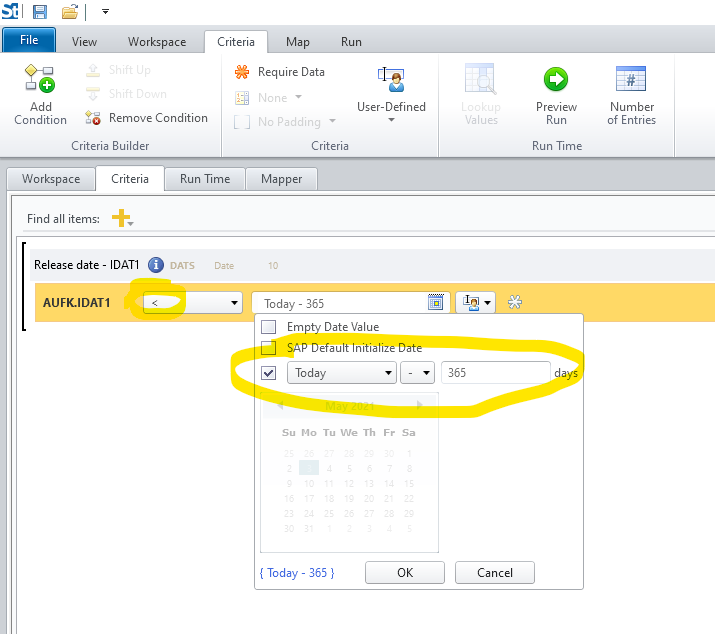 Wondering what the best practice is for extracting Winshuttle queries for a specific date range. I am trying to extract internal orders from table AUFK that have a release date that is greater than 1 year old. Is there a best practice suggestion?.