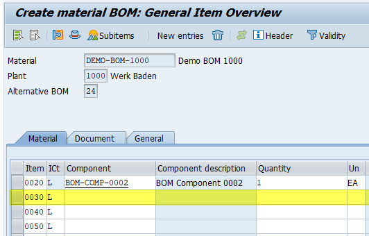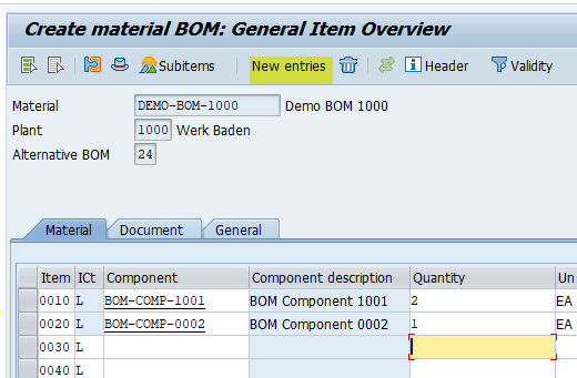 With the above 2 items already entered, it will push the components UP, and line 2 will always be available for entry. So after I click New entries, I'll see this: