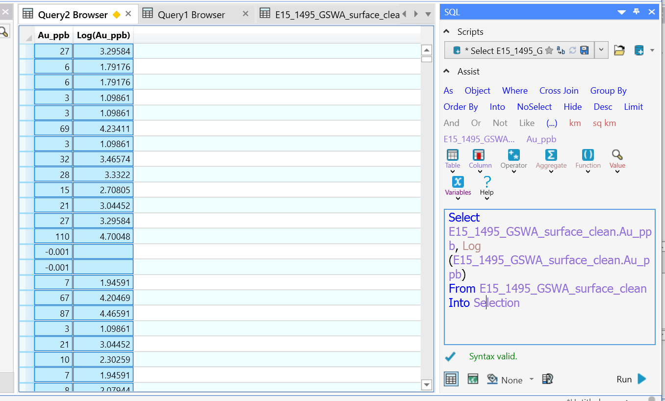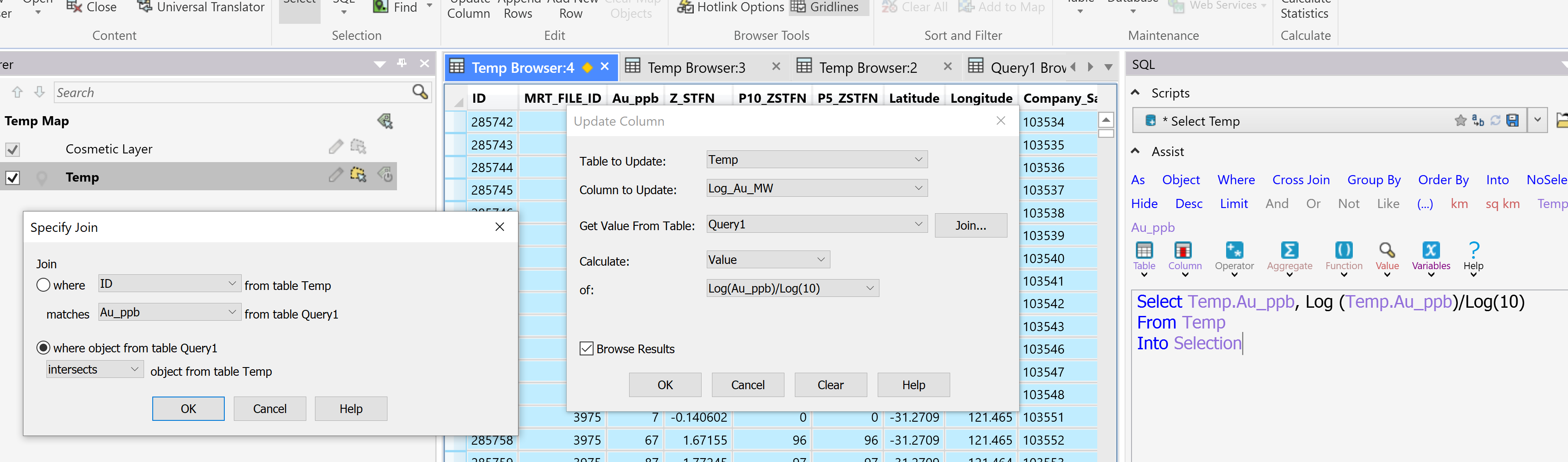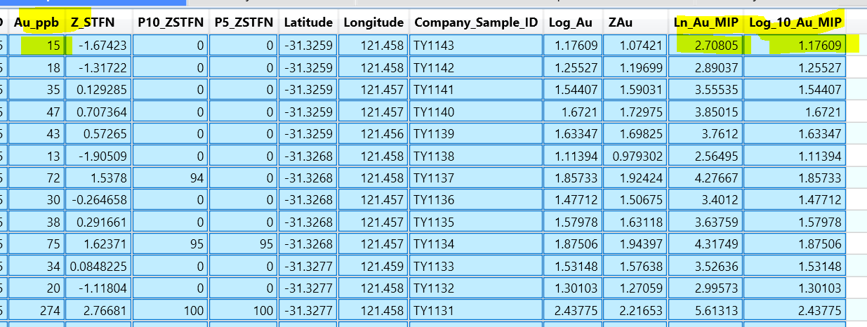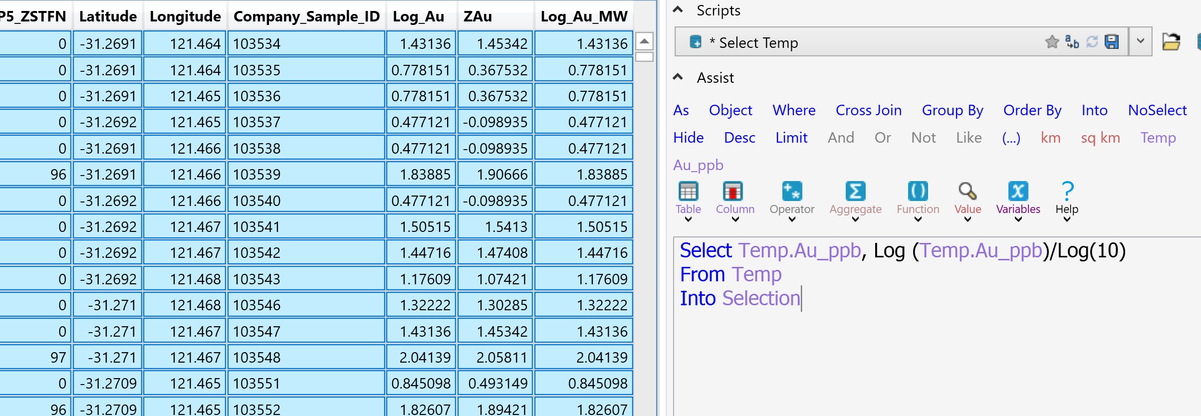 Is there a way to write the LogAu, back to the original table, placing the Log(Au_ppb) at the end of the original table?