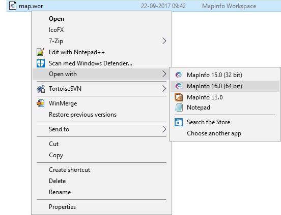 How to distinguish different MapInfo versions in Right click -> Open with context menu.