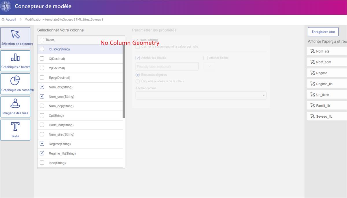 Template Model Conceptor - Manage the "Object" Geometry column in the designer ?