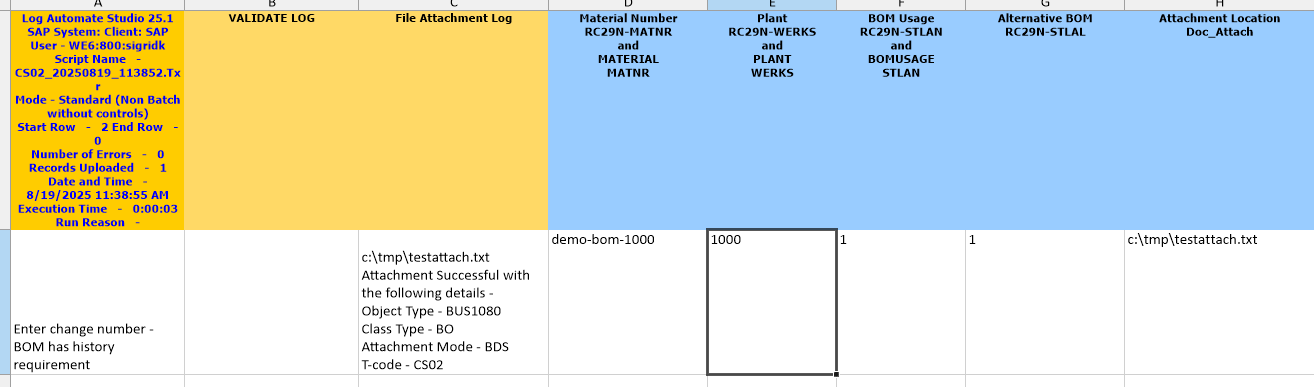 I am trying to record a script where i want to attach an SAP document to the header of an existing BOM in t-code CS02. After recording de transaction i dont see the fields related to the document. I was expecting to see at least the field where i have filled the number of the document in. But no fields, no controls, its as if nothing was recorded at all.