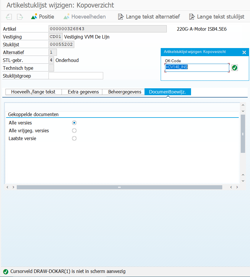 On the third screen if fails, i get a green warning that there is no field DRAW-DOKAR(1):