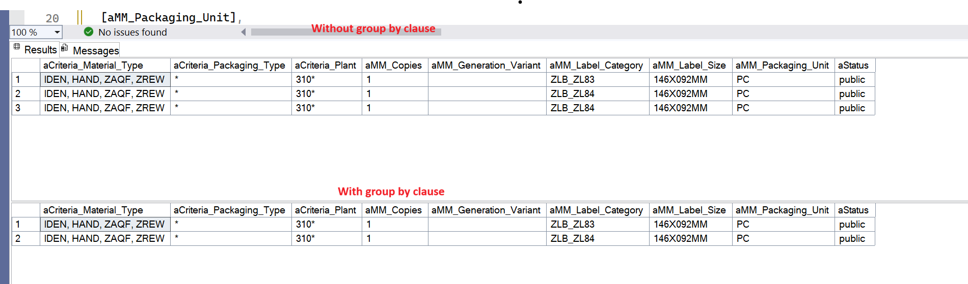Regarding the GROUP BY, it is working correctly and grouping the similar rows as expected. I have tested it, and the results are consistent.