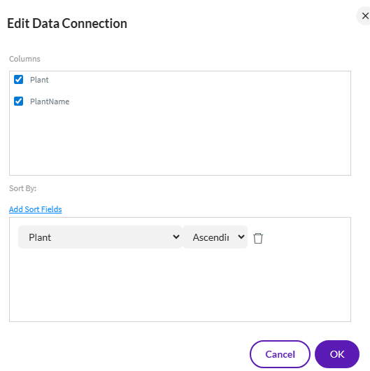 4. In the "Data Connection," all (!) columns of the "Reference Data List" addressed by the "Query" code and the "Set Fields" property must be selected.