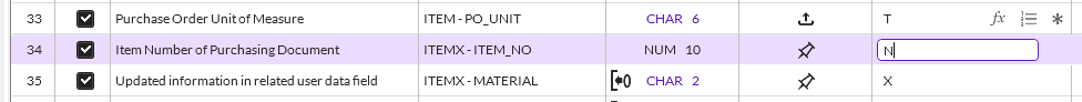 Line 34 maps item number in the ITEMX table as a hard coded value of "N". You want to map it to column N - the same column as the ITEM table has item number mapped to.