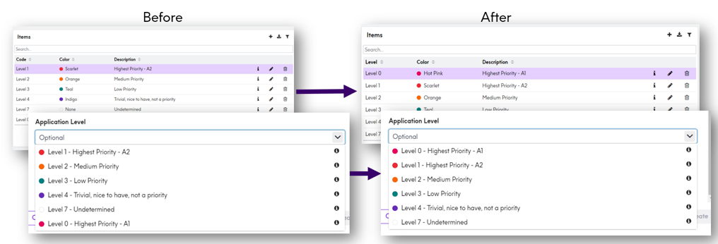 You can now rename the system field Code to a user-friendly name. We have also enabled the Sort Order option in the field definitions on a reference list. The sort order will be honored wherever you can view the reference list or add a reference list item. This includes when reference lists are used in a List field on an asset type.