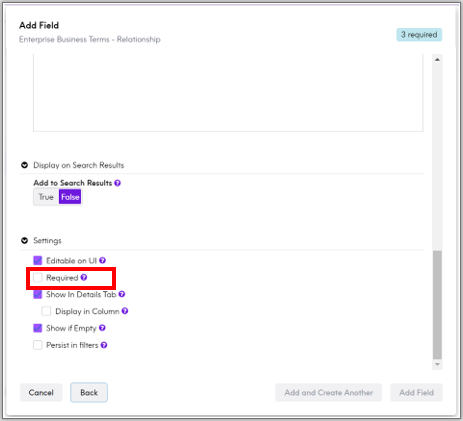 Another new enhancement related to the new Add/Edit modal is the ability to make a Relationship field required. For example, some customers wanted the ability to require a new asset item be related to a Domain (Model) before it can be created. Administrators can now force a relationship to be populated before the asset item is saved.
