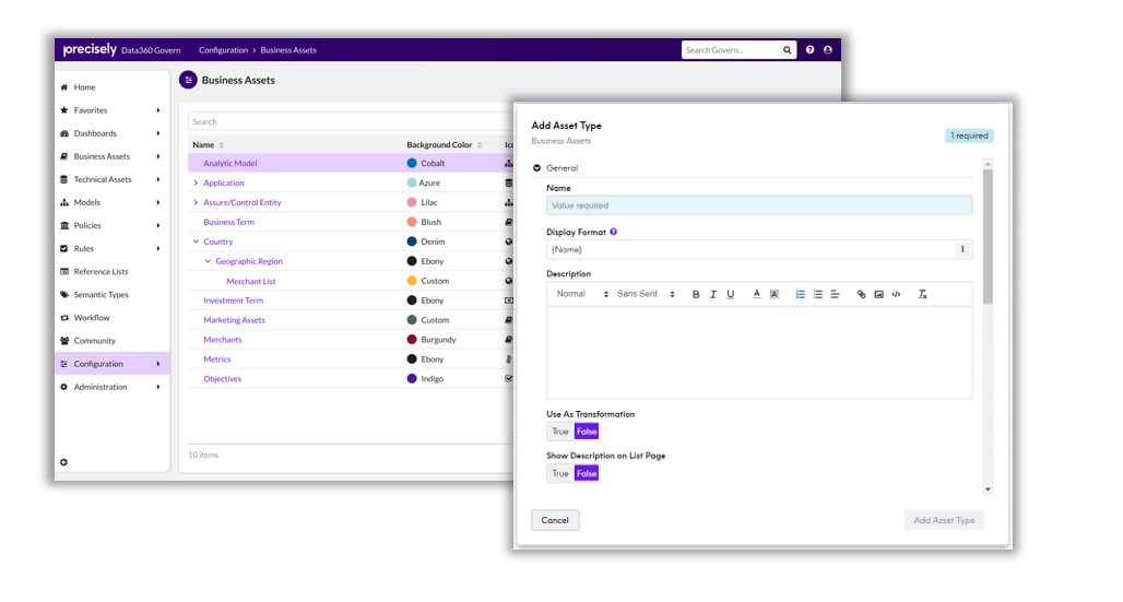 The list grids have been updated in Configuration and the add/edit functionality has been moved to our standard modal dialogs. This will provide a simpler user experience when reviewing and adding asset types.