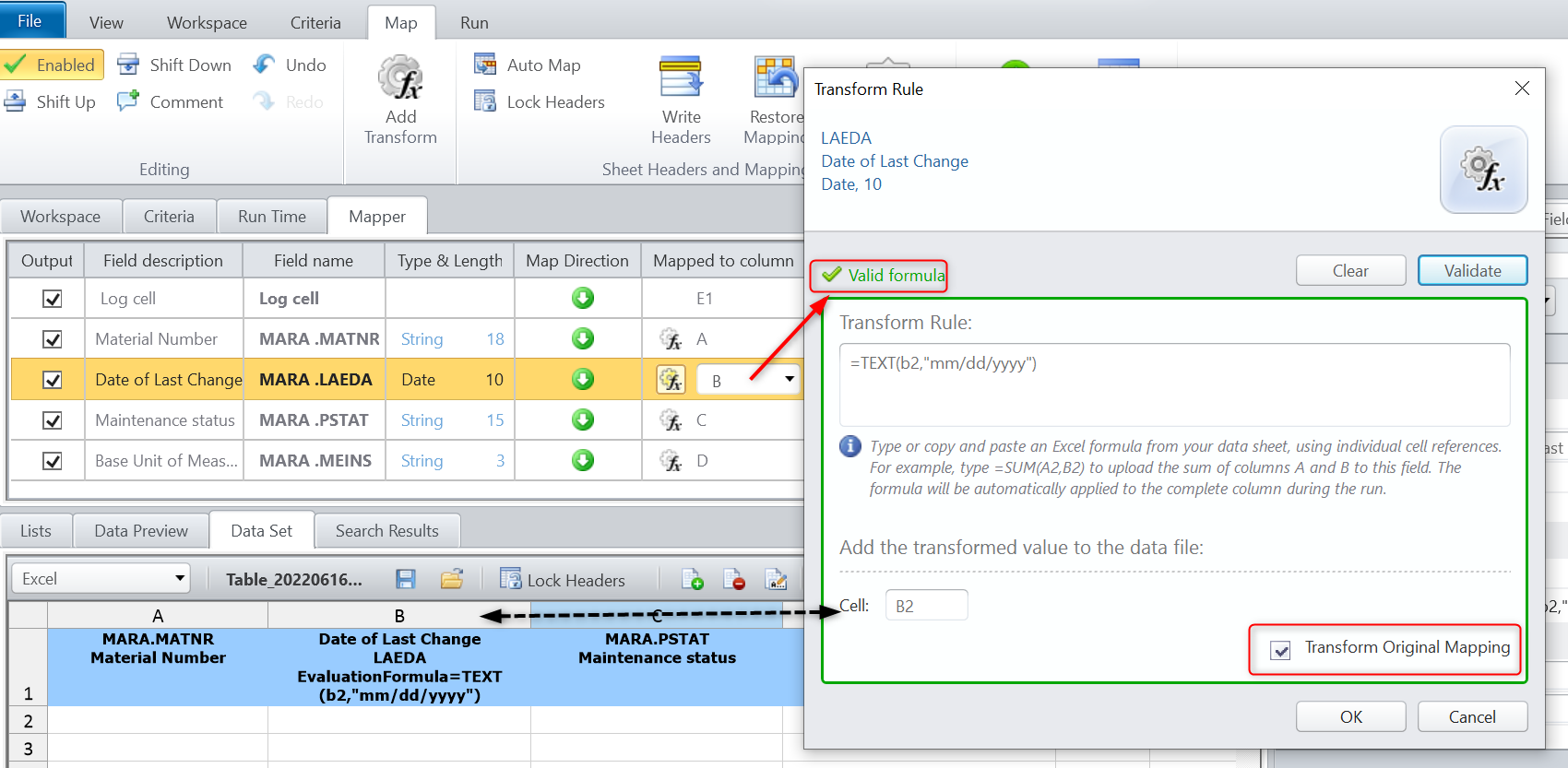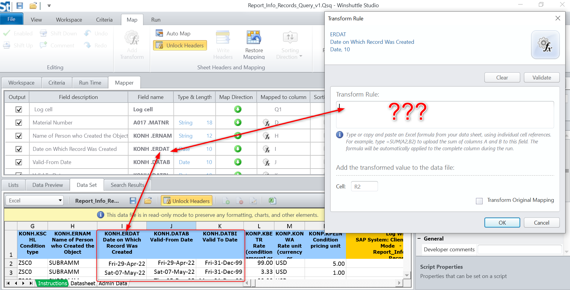 My simple query works well except that the following date columns I'm unable to extract in mm/dd/yyyy format . Could someone please guide me to setup the transformation rules?