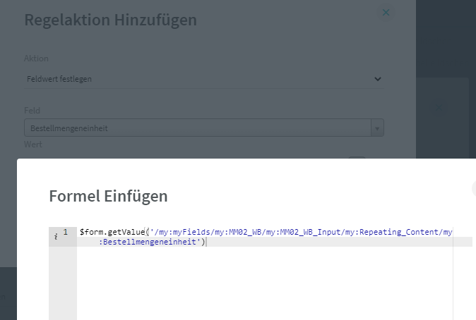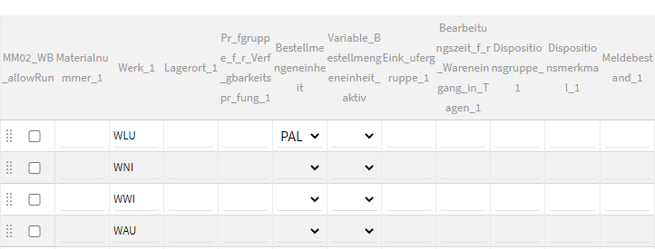 If the user insert a value at the field "Bestellmengeneinheit" this value should be transferred into the other lines automatically.