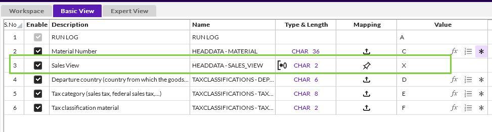 But because you didn't tell which area in SAP you were updating in Headdata, it didn't do the update. Because this BAPI is massive, it requires you select the area you are updating in Headdata, and then in the various tables select the fields. If you have a matching "X" table, you have to also tell SAP which fields you are uploading - but that is not needed for the tax classification - just the headdata settings.