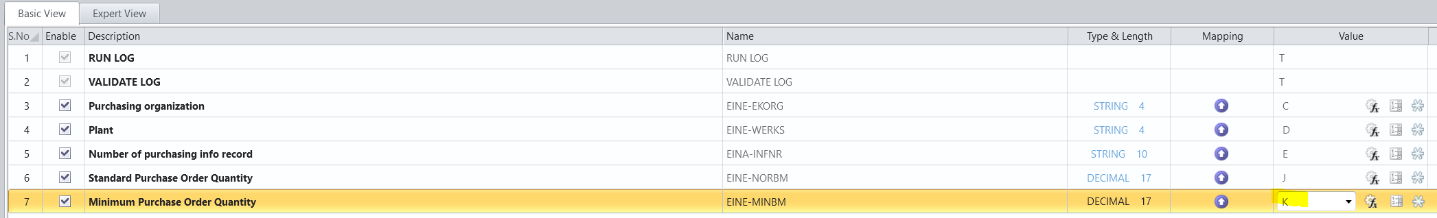 For example, making no change to 'Minimum Purchase Order Quantity' value on SAP S4, if the value in Column 'K' is blank.