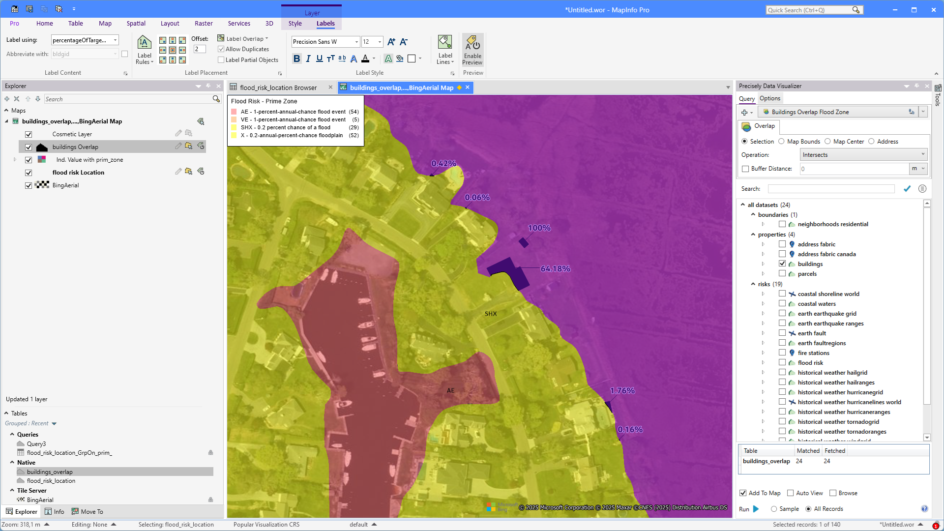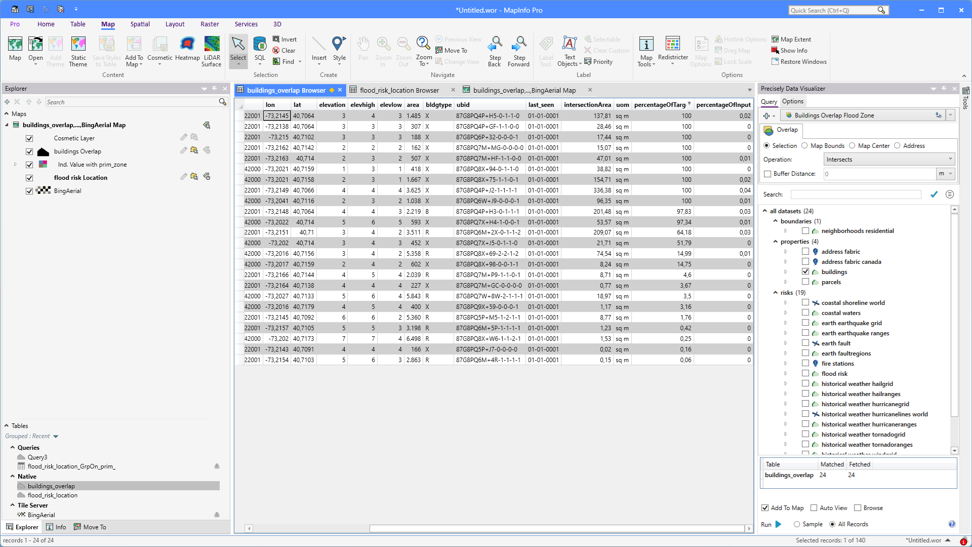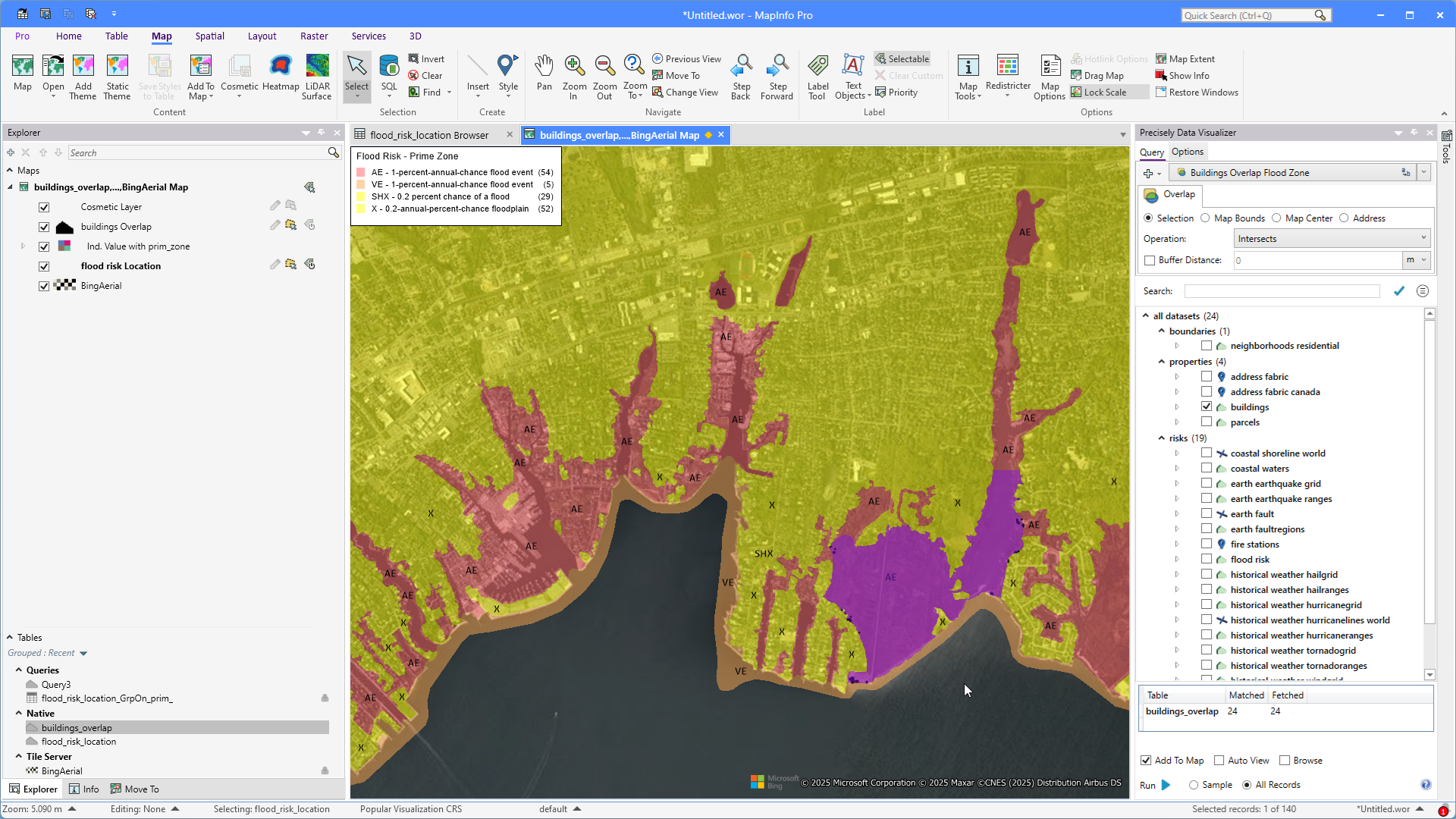 We will show how you can use the Precisely Data Integrity Spatial Analytical APIs to first find potential flood zones for an area and then, using one or more of these flood zones, analyze which buildings are in the flood zone and how much of the buildings overlap the flood zone.