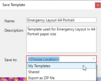 Before saving the new template, you must select where to save it in the Save to: field. The options available to you depend on your MapInfo Pro configuration. You can always save them as My Templates. This means they will be saved locally on your computer in a subfolder in your Local AppData folder: %localappdata%\MapInfo\MapInfo\Professional\2300\Tools\LayoutTemplate\Templates\My Templates.