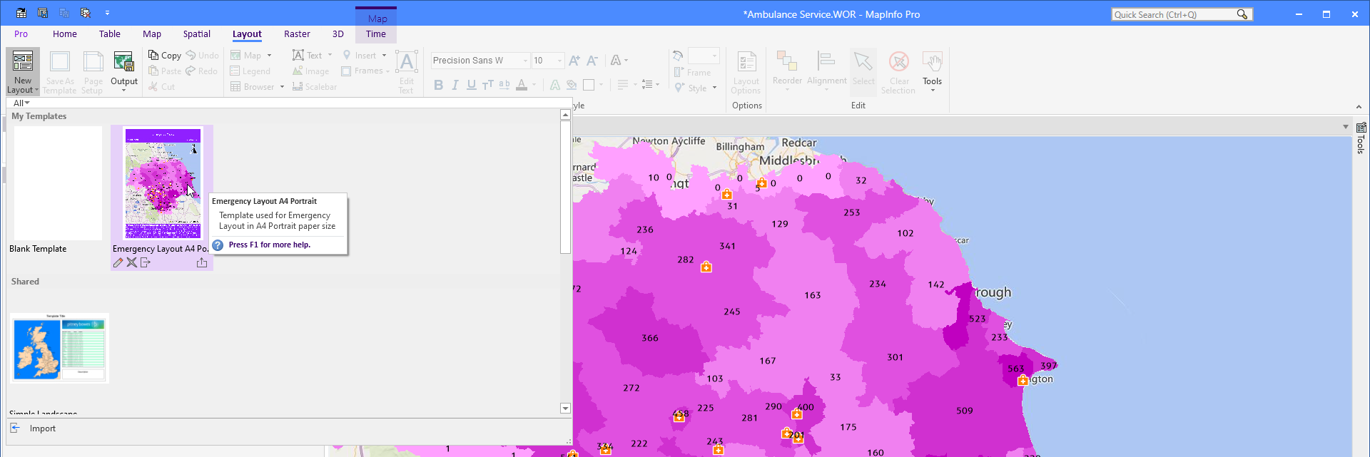 You can read more about working with the Layout Template add-in in the MapInfo Pro documentation on the Precisely Help Center.