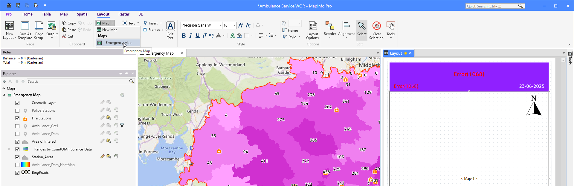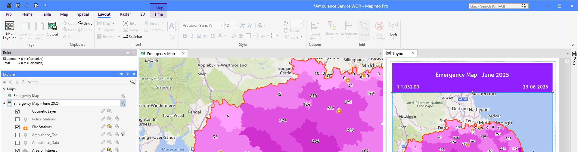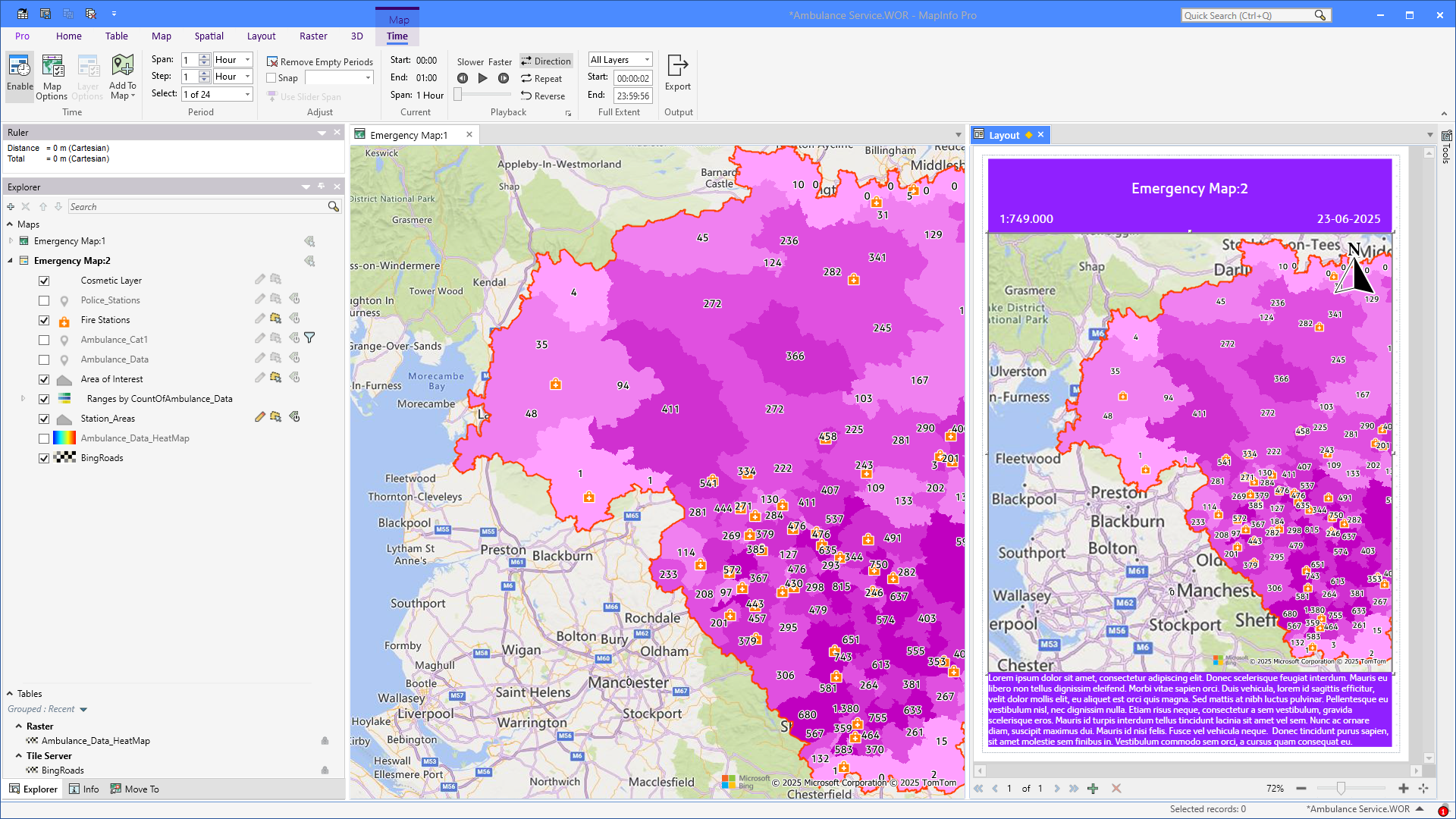 In many cases, the goal of your work inside MapInfo Pro is to create an output in the form of a map. And very often, this map needs to be created in a certain way with a given set of texts in a title block. That can include texts such as a title, the scale of the map, a date, and brief text describing the map or the analysis results.