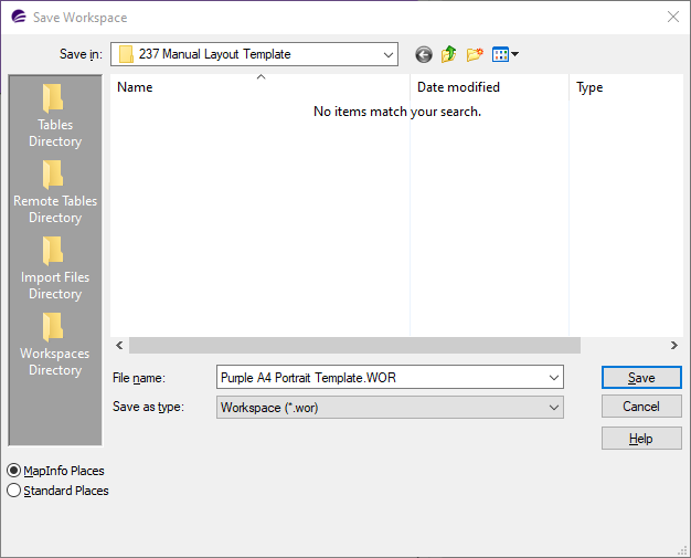 First, you need to make sure you have no maps or tables open. We'll end up saving the layout template to a workspace, and we don't want to contaminate this workspace with tables or windows that aren't part of the layout template.