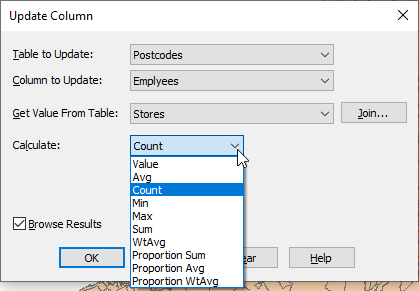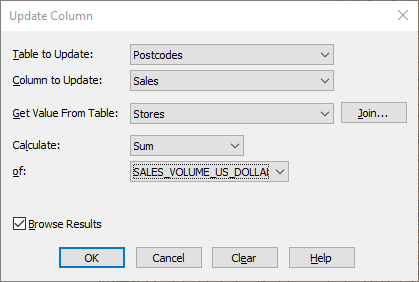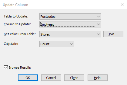 A very common task in MapInfo Pro is to update one table with values from another table. You may want to update all the postal sectors with the total sales from the stores in these postal sectors. Or you want to count the number of pupils in each of your school districts or the number of registered votes in each voting district.